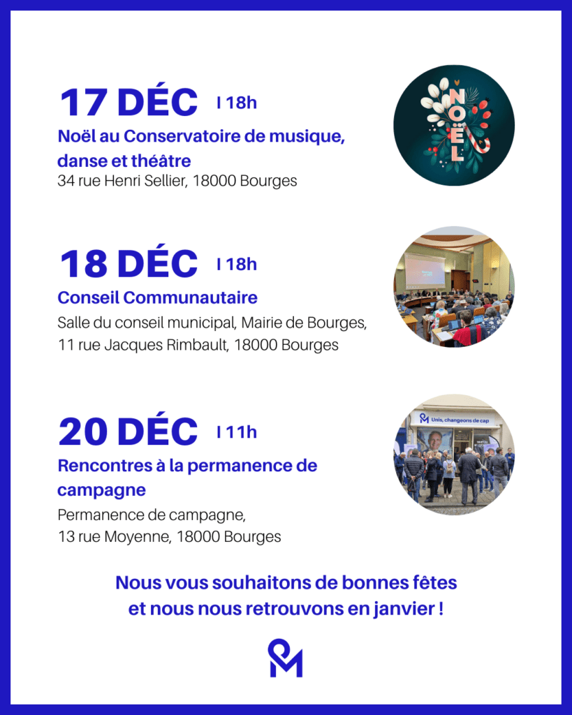 AGENDA DE LA SEMAINE – 15 au 21 décembre