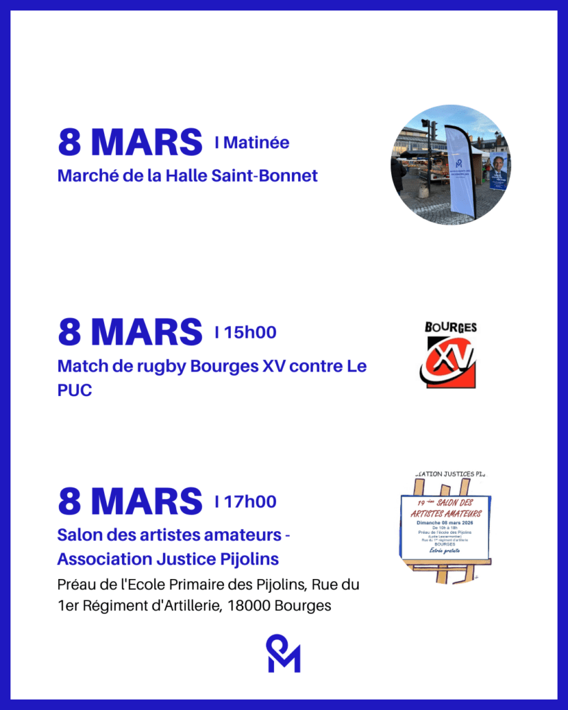 AGENDA DE LA SEMAINE – 2 mars au 8 mars 2026